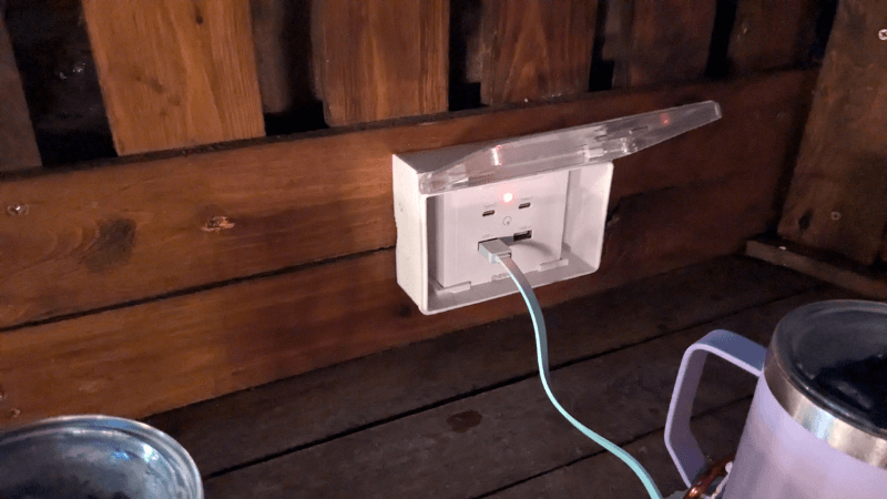 そしてまさかのスマホ充電できるエリアも。閉業したゴルフ場が会場なので期待していなかったのですが、あまりにも設備が整いすぎていて仰天。